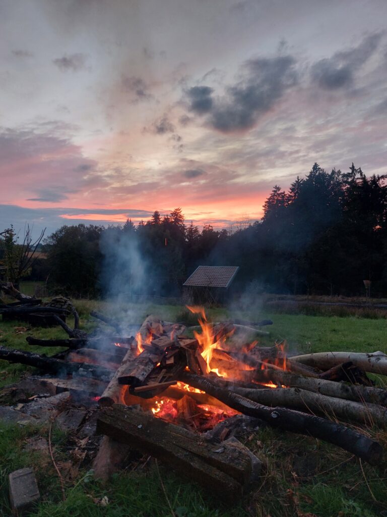 Beim Lagerfeuer in einer lauen Sommernacht entstand die Idee der verkohlten Baumstämme als Blickfänger. Wie kleine Drachen umkreisten uns einige Fledermäuse am Feuer. In Furth im Wald soll ein ganz großer Drachen unterwegs sein. Ob der auch Feuer spuckt? Wie wird es aussehen, wenn aus der verkohlten Landschaft wieder neues Leben sprießt?